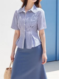 Women Button Down Shirt Casual Striped/Plaid Print Short Sleeve Tops Blouse for Streetwear Aesthetic Clothes