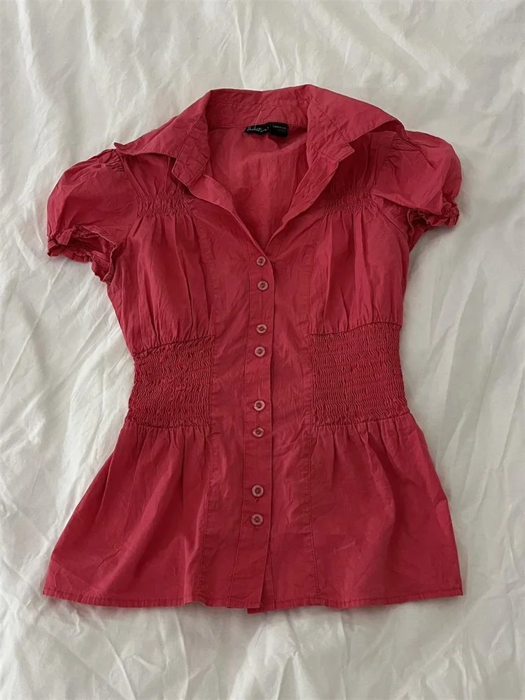 Women Summer Basic T-Shirt Casual Solid Color Button up Short Sleeve Tops for Streetwear Aesthetic Grunge Clothes