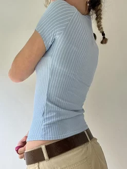 Women Striped Shirts Short Sleeve Button Closure Slim Fit Summer Tops Elegant Casual Blouses Streetwear
